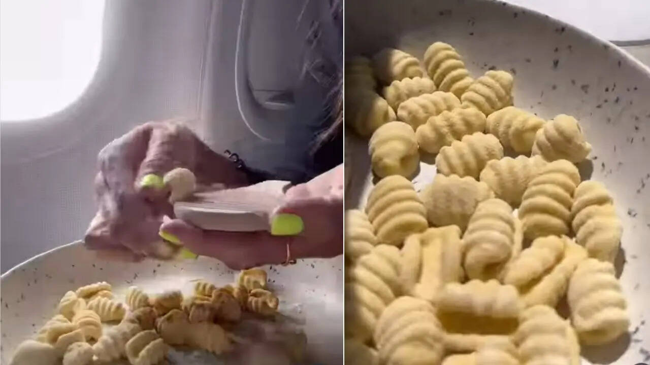 वीडियो में आप देख पाएंग कि वह आटे को चार अलग-अलग टुकड़ों में लंबा करती हैं। इसके बदा एक कटिंग टूल से आटे के छोटे-छोटे टुकड़े बनाती हैं। इसके बाद टुकड़ों को ग्नोची बोर्ड के उपयोग से ग्नोची का आकार देती हैं। अंत में शानदार पास्ता से भरी प्लेट तैयार नजर आती है। ब्रूक्स ने इस वीडियो को शेयर करते हुए लिखा, ‘POV- आपको प्लेन का खाना पसंद न हो और आप खुद बनाते हों।’ इस वीडियो के साथ उन्होंने कैप्शन में लिखा- ‘कोई और भी?’